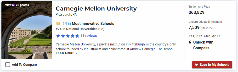 卡耐基梅隆大学作为一所知名的研究型大学,在世界范围内享有盛名,它的艺术学院,商业学院,工程学院,公共行政学院,都是美国最顶尖的学府之一。