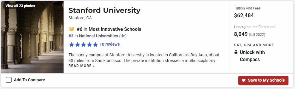 斯坦福大学坐落在美国高科技工业的核心——硅谷,毗邻着谷歌、惠普等技术巨人,并和伯克利加州大学一起组成美国西部的科学研究中心,经营着 SLAC国家加速器实验室、胡佛研究所等科研院所。
