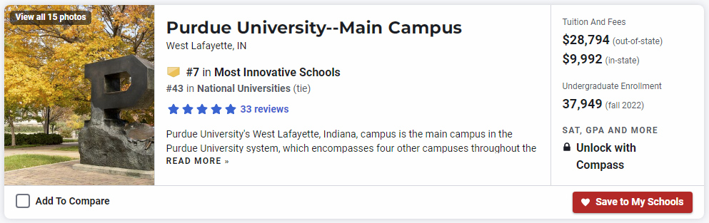 普渡大学在美国的高等教育圈内享有极高的声誉,被誉为“旅游界的哈佛”,“美国航天之母”,“工程学之父”,在美国乃至全世界都享有极高的声誉。也是为数不多的,没有医学院,没有法律,没有建筑,却能在全球范围内名列前茅的大学。